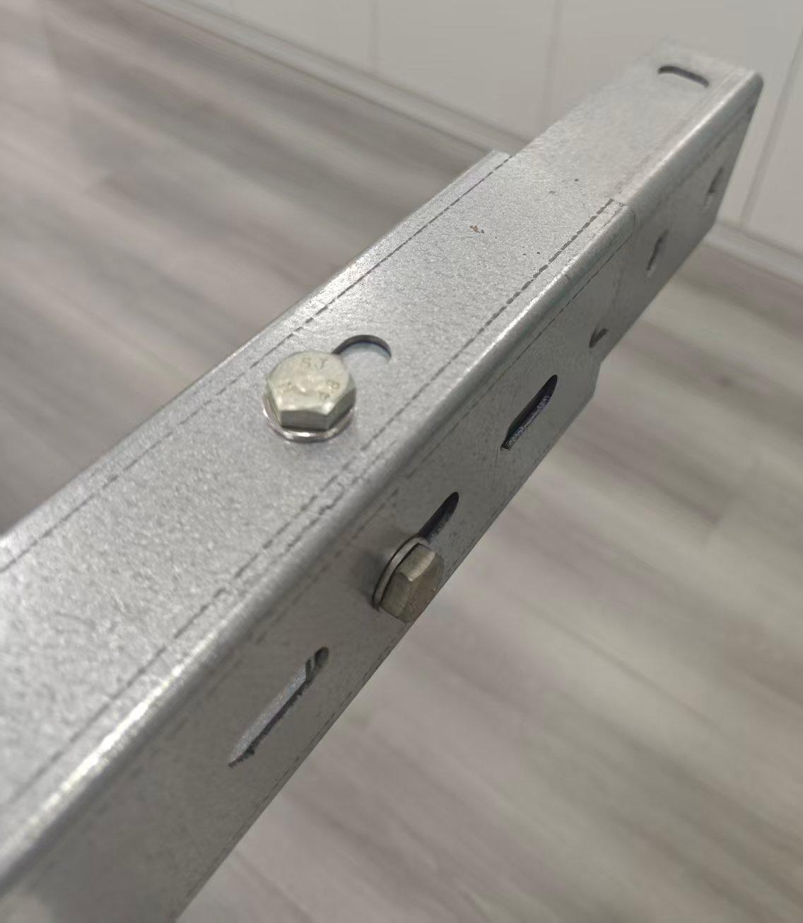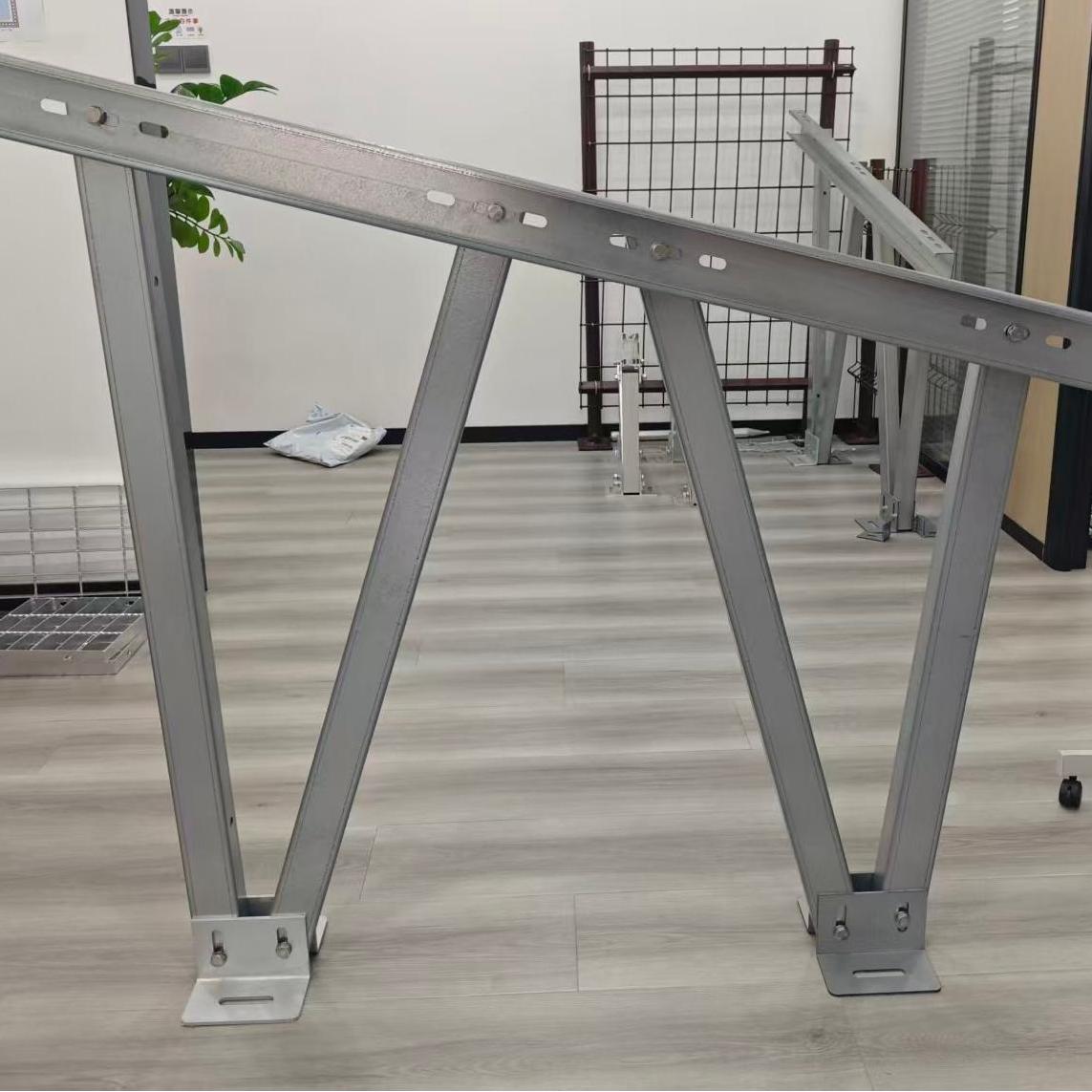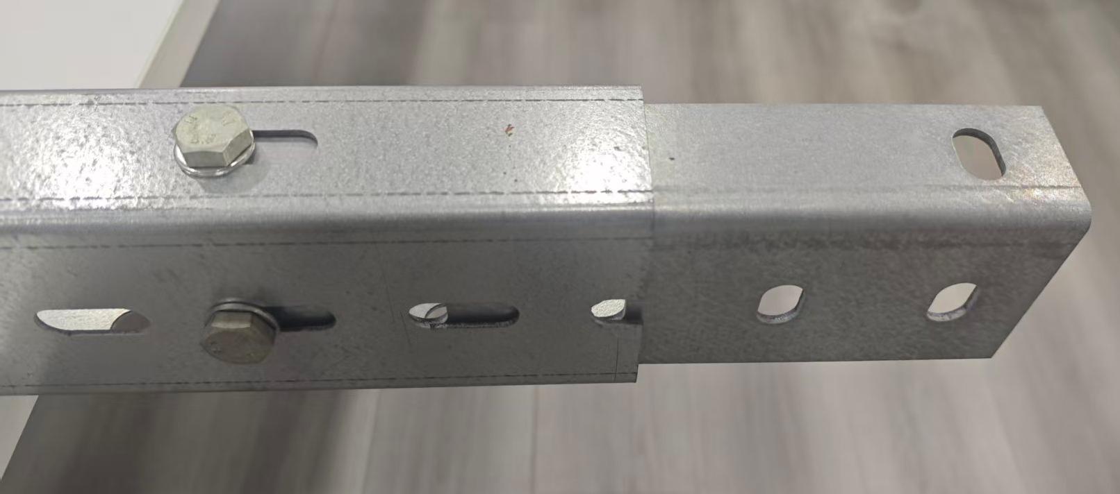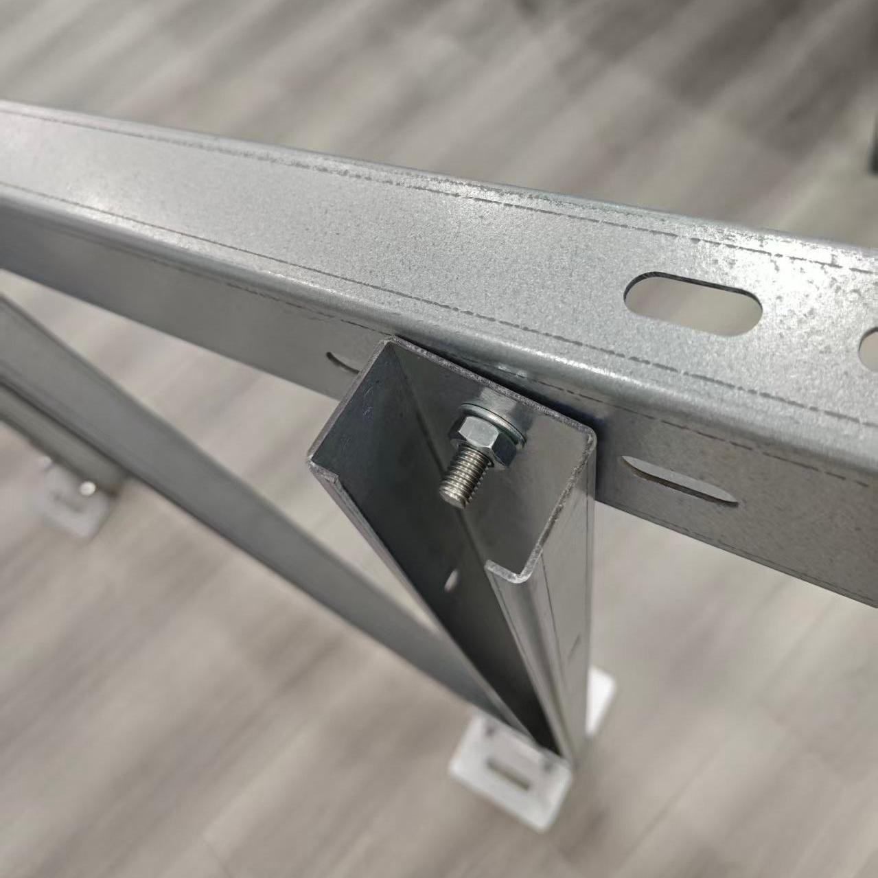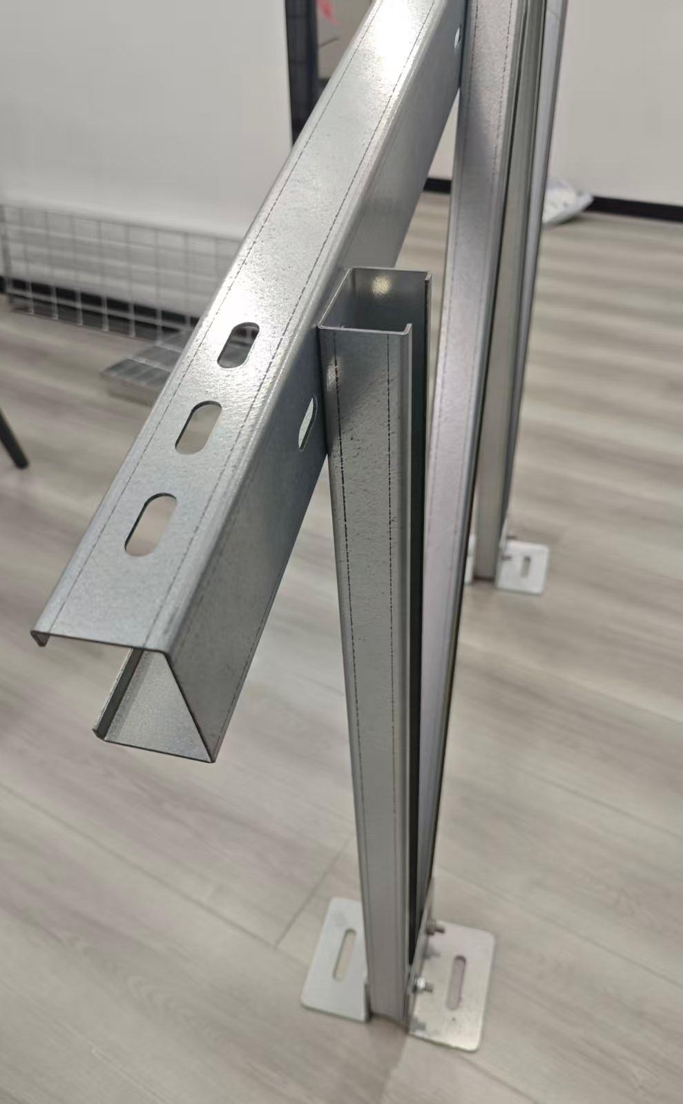 1.ขั้นแรก เตรียมรางโซลาร์เซลล์ชนิด C สองตัวที่จะติดตั้งและยึดเข้ากับฉากยึดก่อนการประกอบ